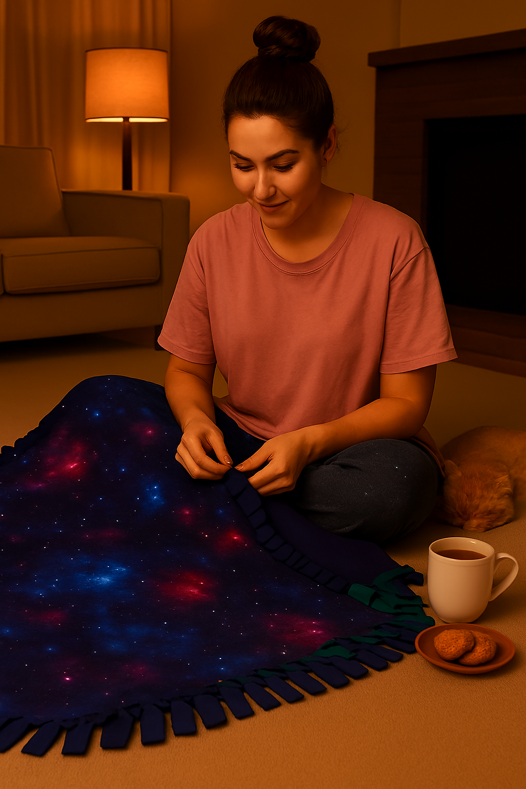 Our No-Sew Double Sided Blanket Kit is a fun activity to do with your family during the holidays. It’s a double sided blanket that requires no sewing at all! It’s 2 layers of fleece that have been joined together using a simple knotting technique. The 2 layers create an insulating heat trap, making it much warmer than your average store bought blanket. It's makes for a lovely handmade gift for occasions such as Halloween, Christmas and Birthdays. All you need is a a pair of scissors and a couple of sets of helping hands! A great DIY project to do when your bored and produces a gorgeously thick and luxurious quality home-made blanket. It's a meaningful gift for all ages; children, babies, teenagers & adults alike.